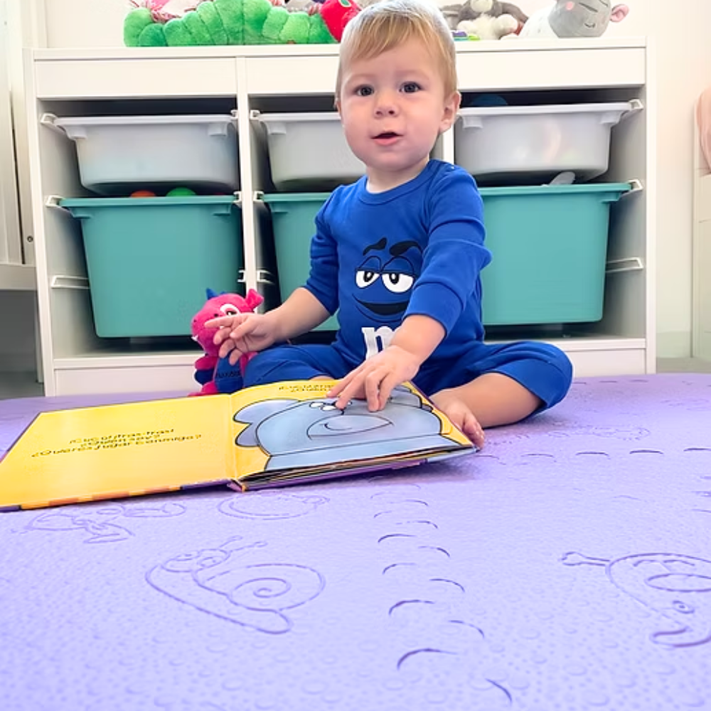 Un buen ejemplo son las alfombras tipo puzle de EVA como las de LuBabymats, que están diseñadas específicamente para esta etapa: