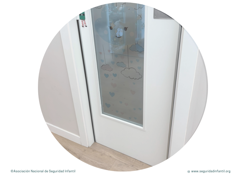 En las escuelas infantiles,  los cristales de visualización en las puertas cumplen un rol fundamental: permiten que el adulto compruebe que no hay ningún niño detrás antes de abrir la puerta, evitando golpes, atrapamientos y lesiones graves.
